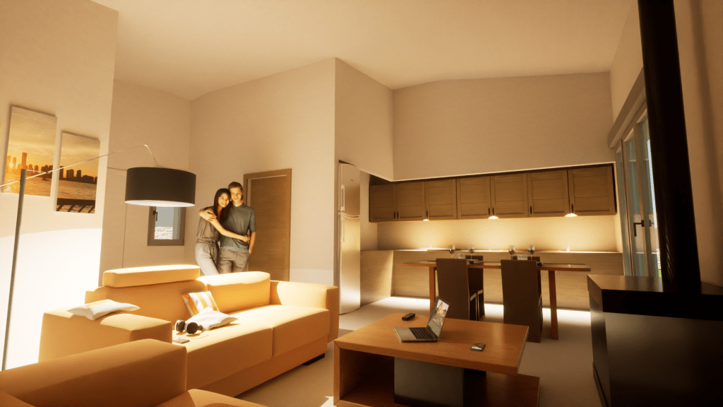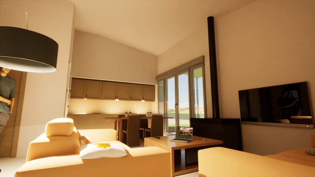 Imágenes fotorrealisticas de interior de vivienda aislada.