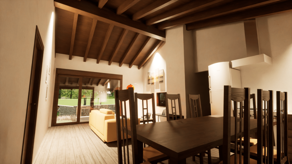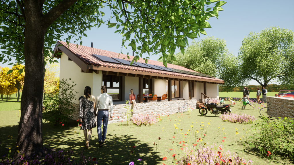 Imágenes fotorrealisticas de interior y exterior de vivienda aislada.