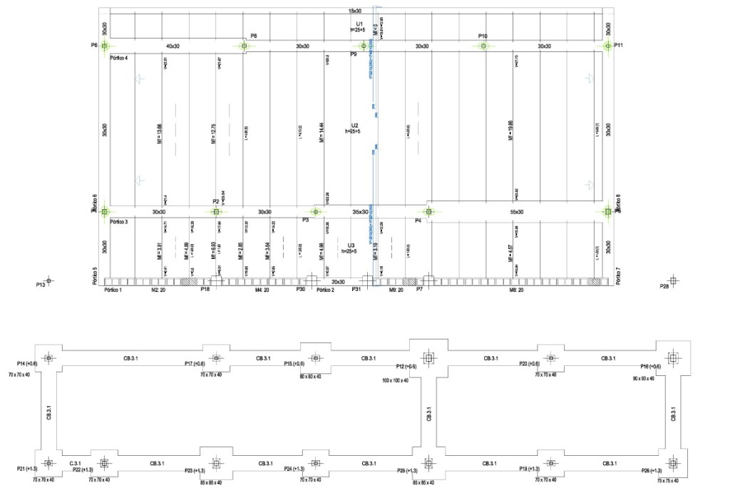 Cálculo estructura de vivienda unifamiliar. Calculada de acuerdo a Código Técnico de la Edificación y Código Estructural. Estructura de pilares metálicos sobre zapatas aisladas de hormigón armado y muro de bloque de hormigón sobre zapata corrida de hormigón armado. Forjado inferior de vigas planas de hormigón armado y viguetas pretensadas de hormigón armado con bovedillas de eps. Cubierta de losa de hormigón armado sobre chapa colaborante.